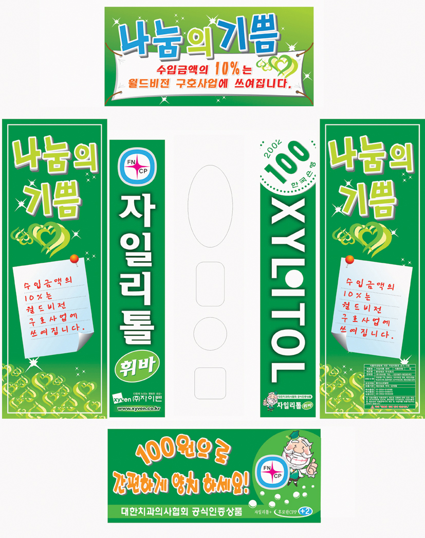 ㅋㅋㅋ 와 작업 이쁩니다. 이거 보니깐 자일리톨 껌이 생각나네요 좋은일에 동참하시는 당신 아름답습니다. ^^